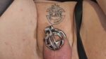 1 This is all I got out of him after edging him for two hours, he has an inflatable butt plug in with estim
